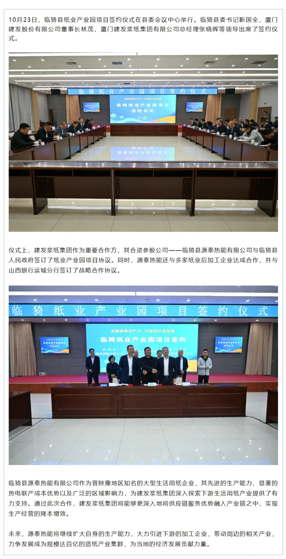 建发浆纸集团与临猗县源泰热能合作推进纸业产业园项目